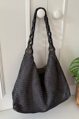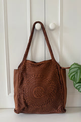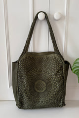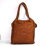 Gorgeous super soft leather tote with zip fastening intricate woven pattern detailing.A beautiful statement forever handbag that will age beautifully