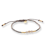 Discover the Decent Labradorite gold-colored Bracelet. This elegant bracelet is made with gold-colored glass beads and 3 small Labradorite gemstones. The bracelet is adjustable with a sliding knot, ensuring a perfect fit for any wrist. Combine this bracelet with your favorite jewelry for a refined and stylish look. The gemstone jewelry from A Beautiful Story is always here to support you on your journey.