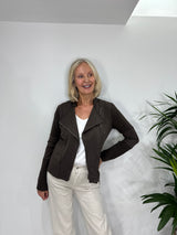 This fitted zipped jacket is one of our key pieces of the season. The blend of 95% cotton 5% elastane creates the perfect easy tailored fit that flatters any figure. Throw on over skinny or wide led jeans, skirts or dresses. Celtic distressed buttons for an authentic touch. So stylish and easy to wear, you'll feel great whenever you wear it!