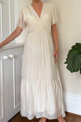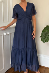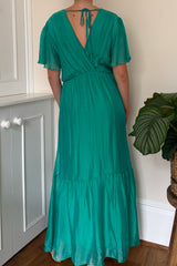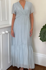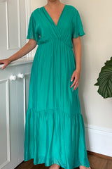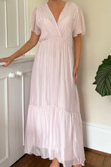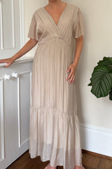 Silk maxi dress with cap sleeve.