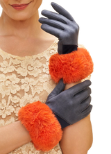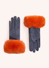 Bold, fun and fabulous! You were born to stand out! Our glamourous two-tone Bettina faux fur gloves in denim are perfect for the minimalist fashionista who still wants to make a statement.