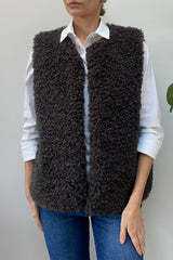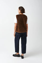 Set to be a 2025 best-seller, this gilet combines irresistible cosiness with effortless style. The rounded neckline and cropped silhouette offer a modern, elegant shape, perfect for layering. Crafted from plush faux sheepskin fabric, it feels as good as it looks. With the added feature of discreet pockets, this gilet brings both function and fashion to your cold-weather wardrobe.