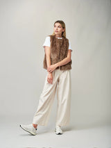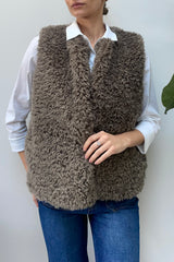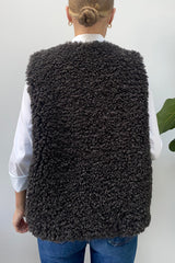 Set to be a 2024 best-seller, this gilet combines irresistible cosiness with effortless style. The rounded neckline and cropped silhouette offer a modern, elegant shape, perfect for layering. Crafted from plush faux sheepskin fabric, it feels as good as it looks. With the added feature of discreet pockets, this gilet brings both function and fashion to your cold-weather wardrobe.