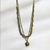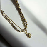 Shine bright with this elegant, layered necklace, shimmering gold and silver detailing and a gold chain with a gold sunshine pendant.