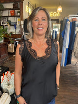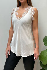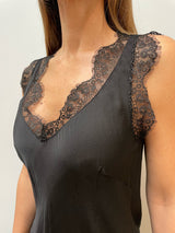 The deep V-neck is prettily detailed with tonal lace giving it a vintage feel.