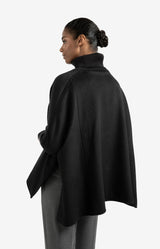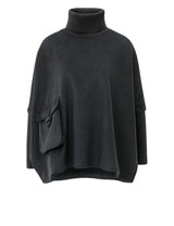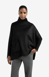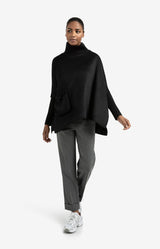 This stylish poncho is made from a soft fabric and designed with a comfortable, relaxed fit. The high turtleneck and ribbed sleeves provide extra warmth, while the large flap pocket adds a contemporary touch. Perfect for layering over a blouse or sweater to create an elegant look on colder days.