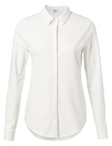 This cotton blend shirt features long sleeves, a concealed button up closure and a pointed collar.