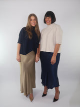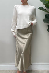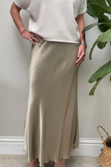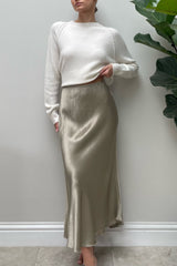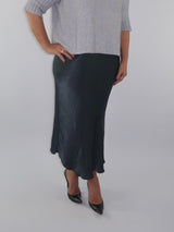 Our best selling classic silky skirt is universally flattering! Cleverly cut on the bias in a weighty satin, it skims not clings, to create a relaxed yet elegant silhouette on any figure.